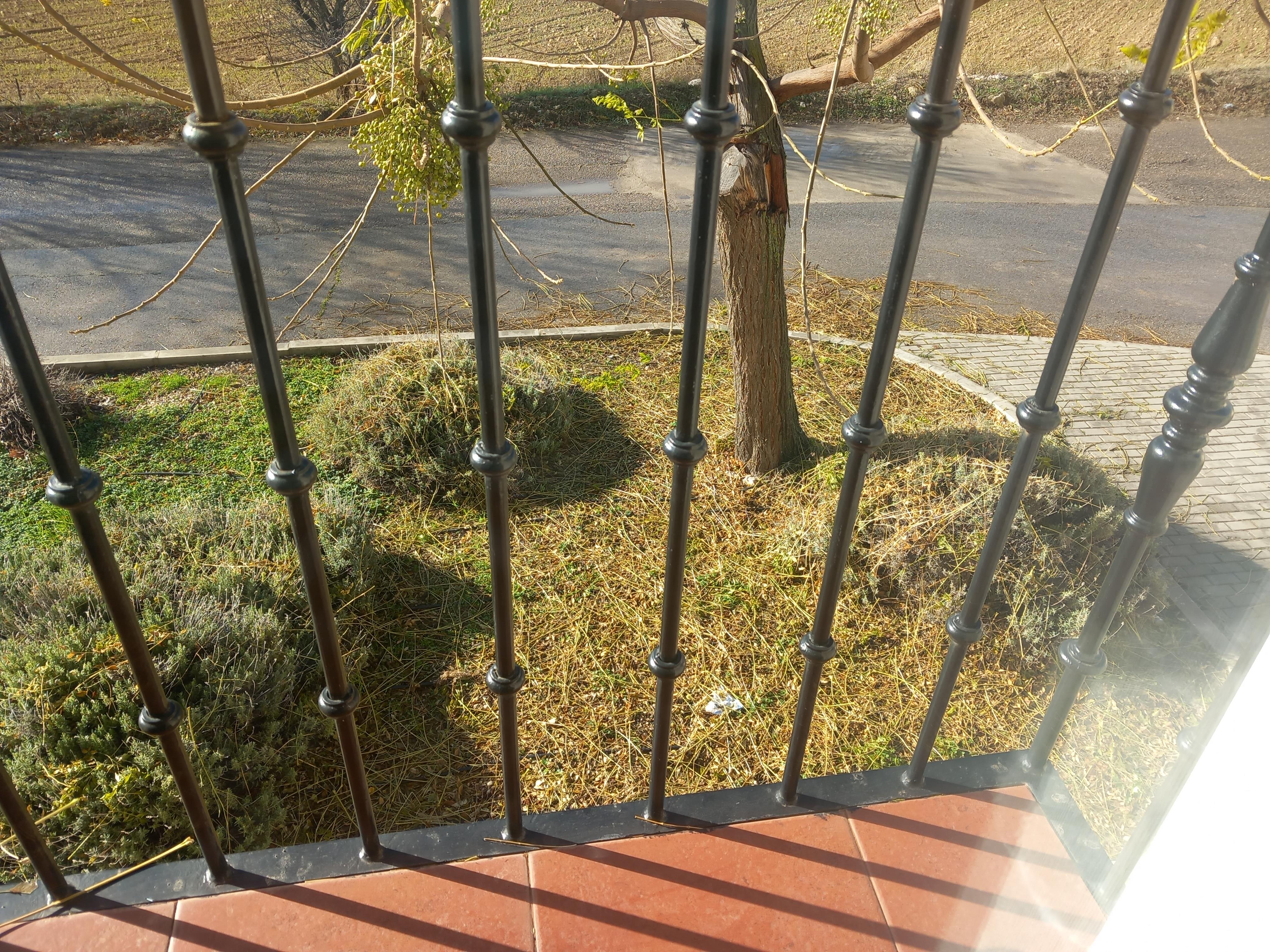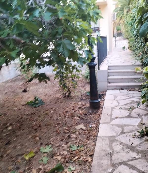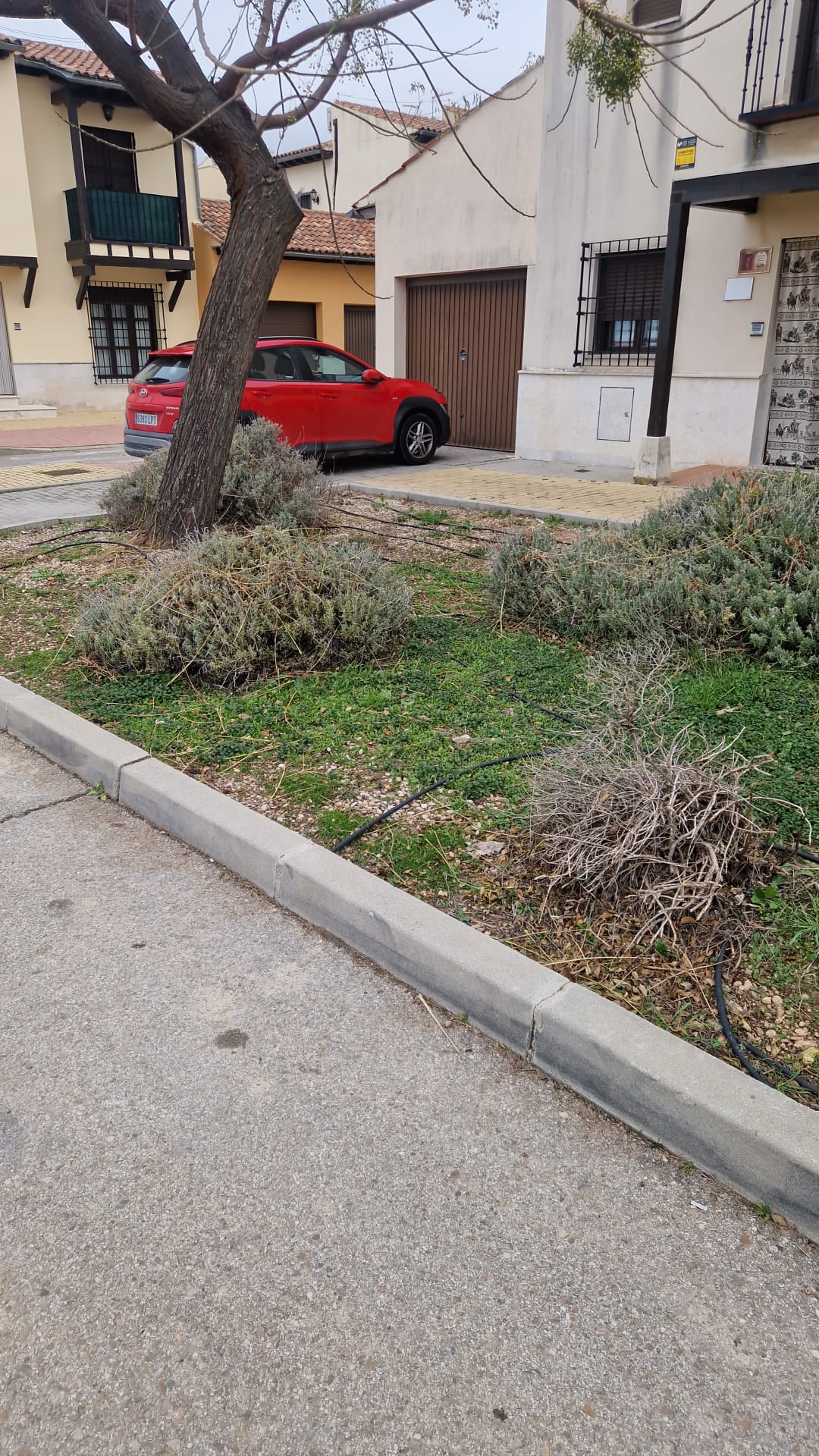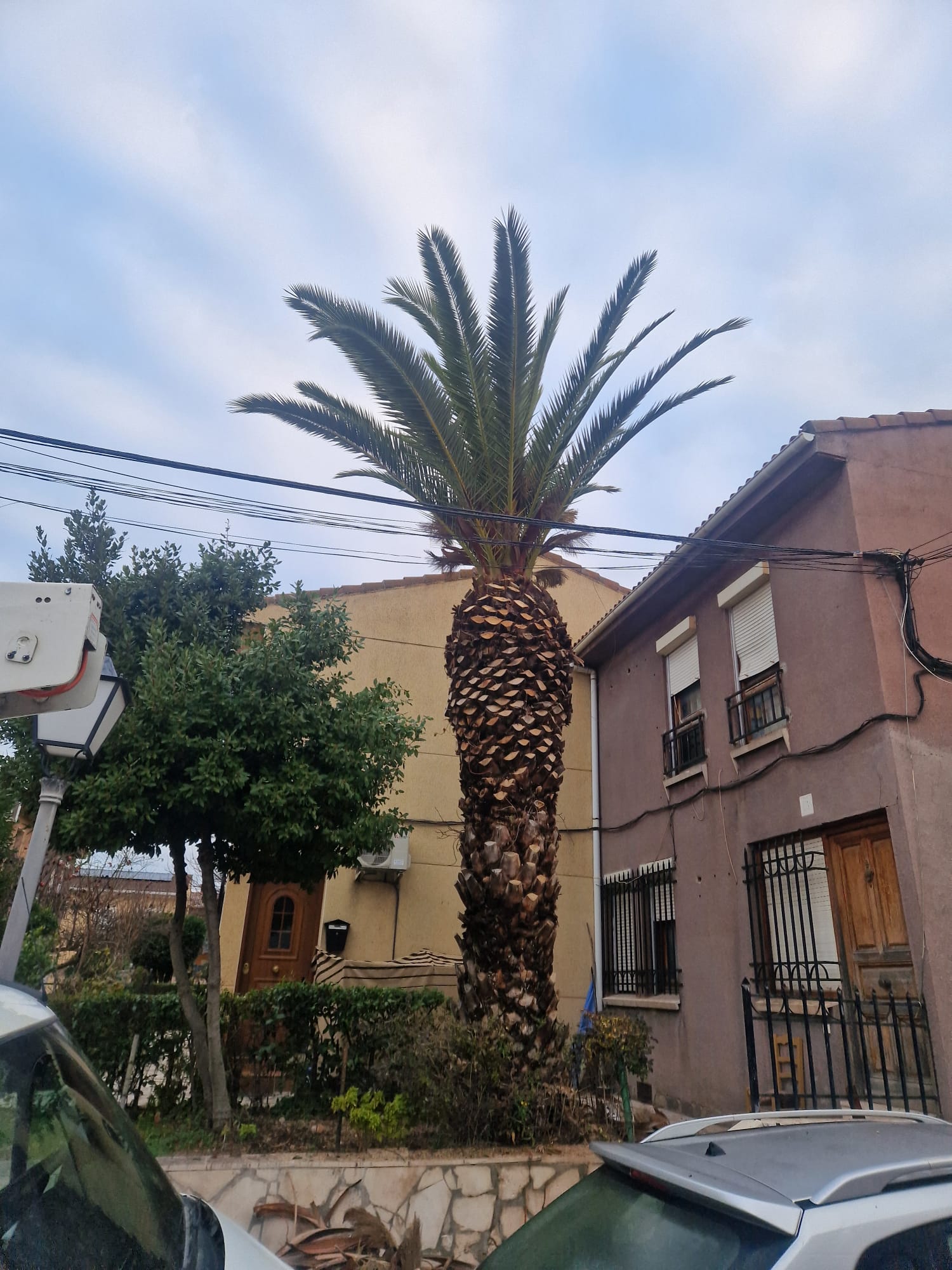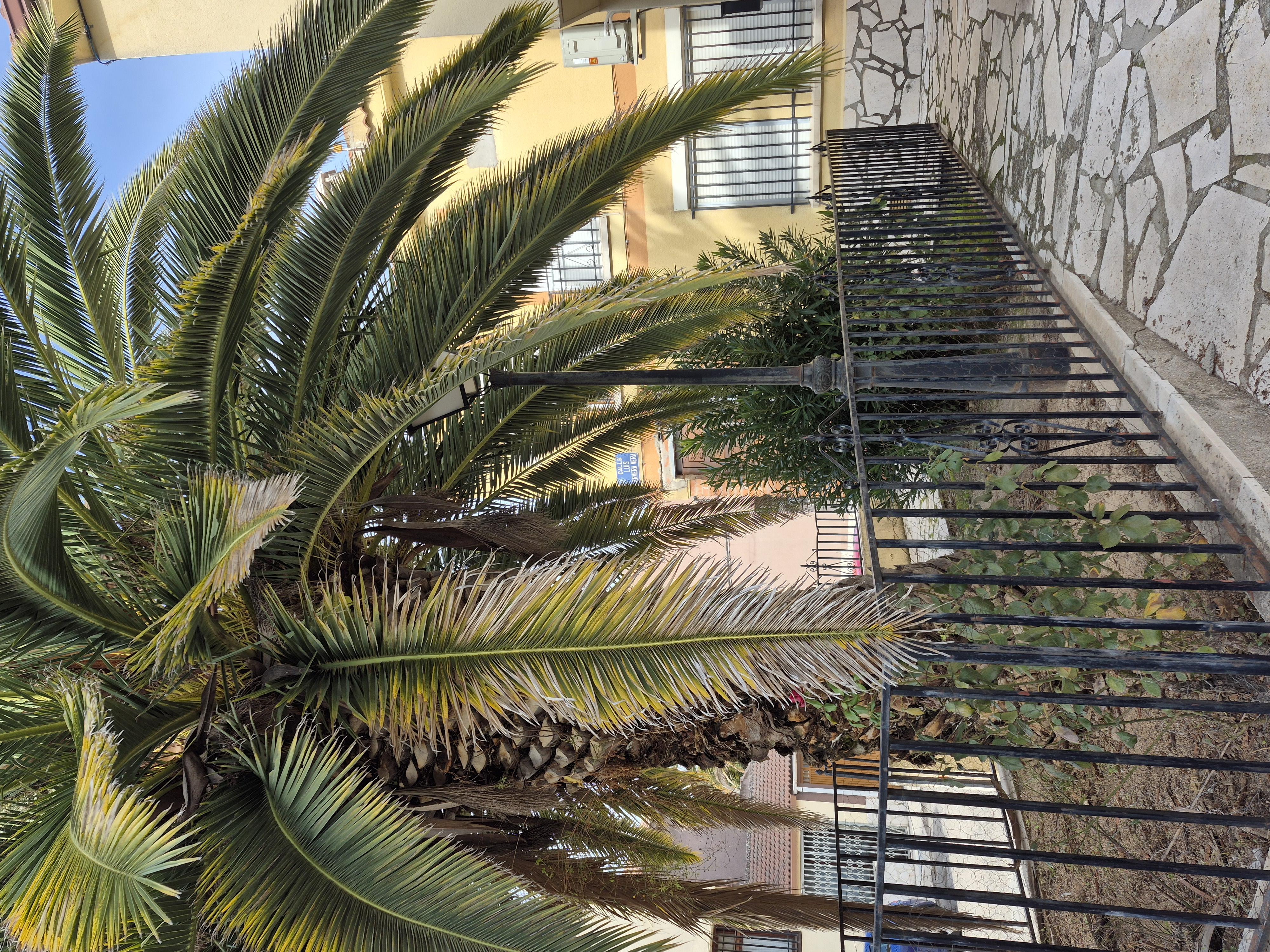 La palmera que se haya en este jardín necesita una poda urgente porque sus hojas se encuentran caídas a la altura de los ojos de las personas que transitan por esta zona, con el consiguiente peligro de resultar dañados. Además, tapan la farola que da luz a esta zona de la calle.
